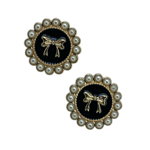 Aplique camafeu laço com pérolas - preto (2 unid.)