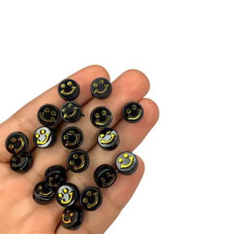 - > Miçanga - Bolinha plana preta com carinha dourada (25 gramas) 10mm