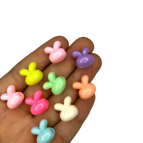 - > Miçanga - Coelhinhos coloridos - 12mmm (25 gramas)