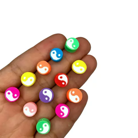 Miçanga (fimo) - Yin Yang 10mm - Cores mistas (30 unidades)